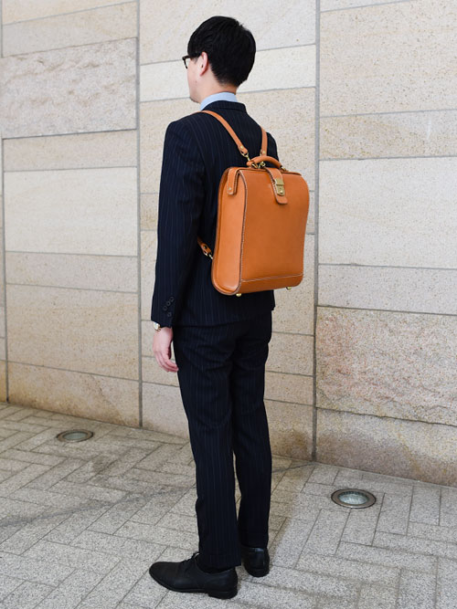 こちらは鈴木自ら考案した、ハードレザーのかっちりとした2wayビジネスバッグ。お客様の声を参考にしたというだけあって、機能性もばっちり。