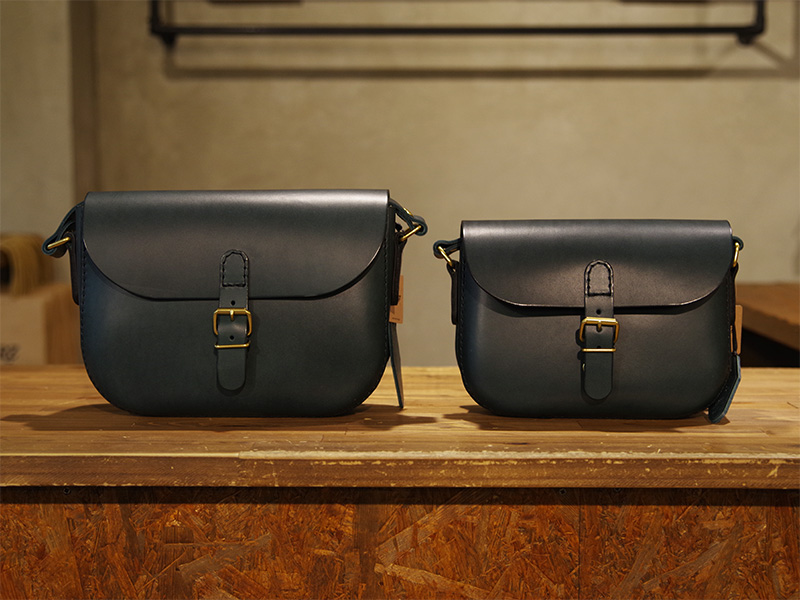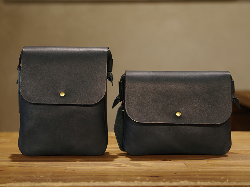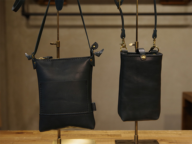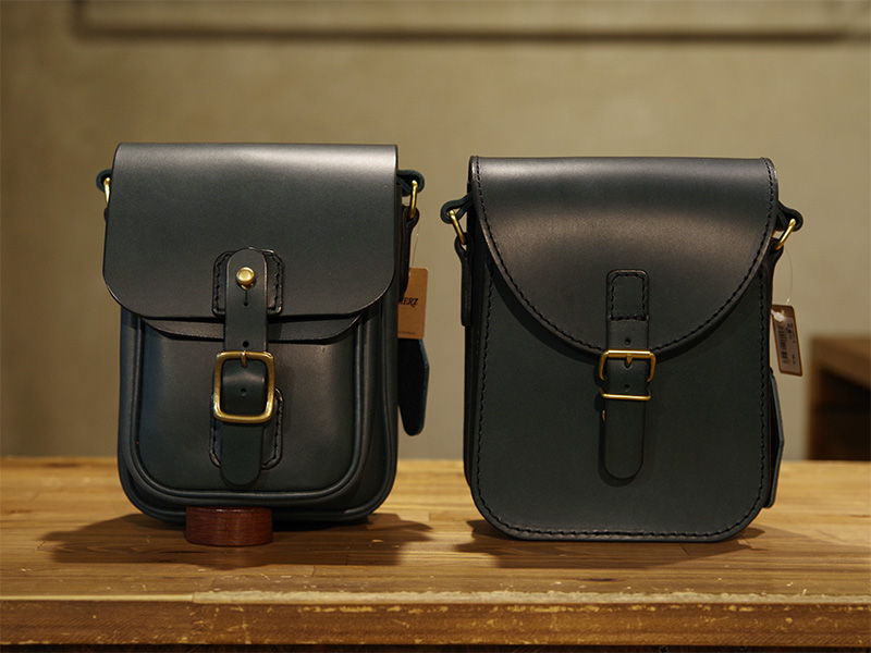 写真左:左からギボシ留めショルダーポシェット(CP-4)ラップフラップミニショルダー(CP-6)