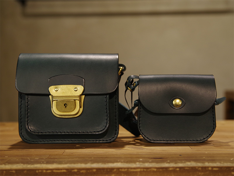 写真右:左から錠前ミニショルダー(CP-13)猫目のミニポシェット(CP-16)S(外縫い)