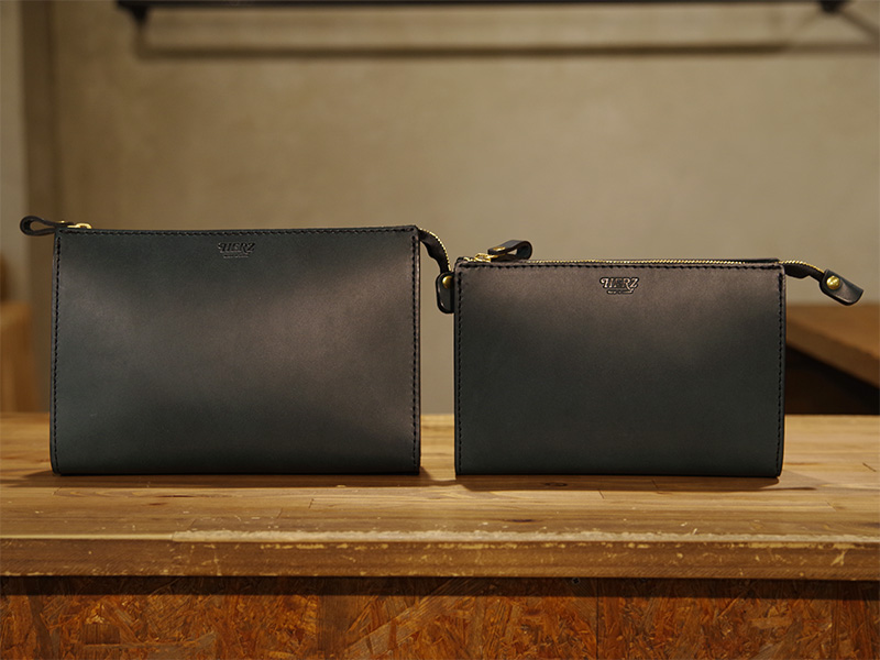 写真左:三角マチのセカンドバッグ(S-12)左からMサイズ、Sサイズ