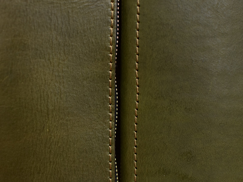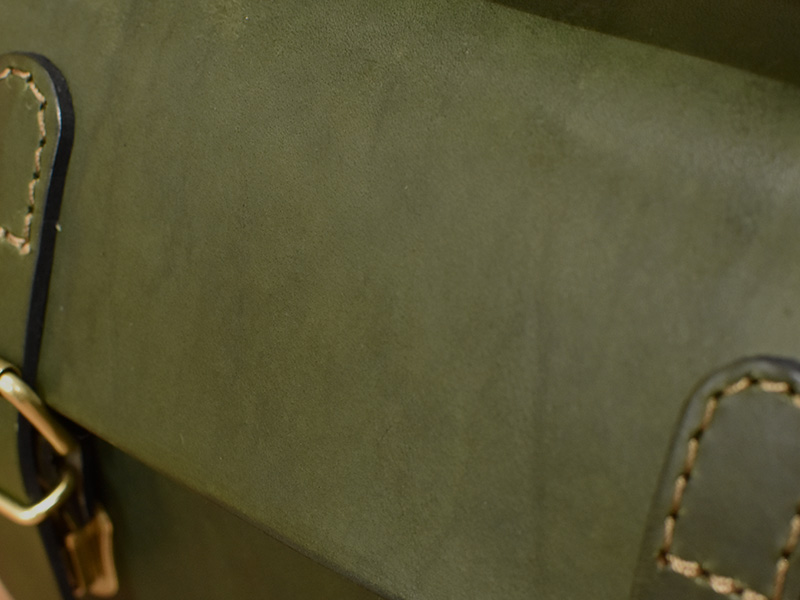 リオショルダーのグリーンカラーは深みのある色味となっており、使い込むほどに艶や深みも増すと共に、青みが抜けて茶色味を感じるようになっていきます。