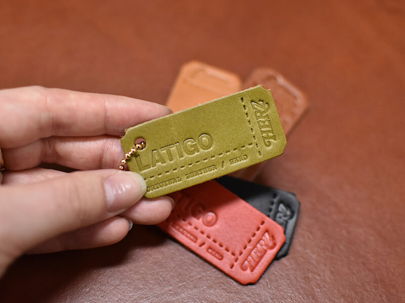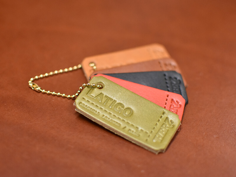 ヘルツでご用意しているオリジナルレザーのハードレザーのラティーゴ、ソフトレザーのスターレが、5色(キャメル、チョコ、ブラック、グリーン、レッド)それぞれランダムで、キーホルダー仕様になっております!