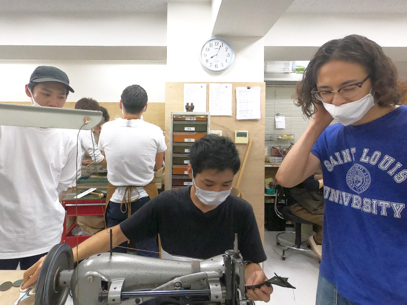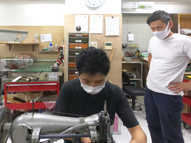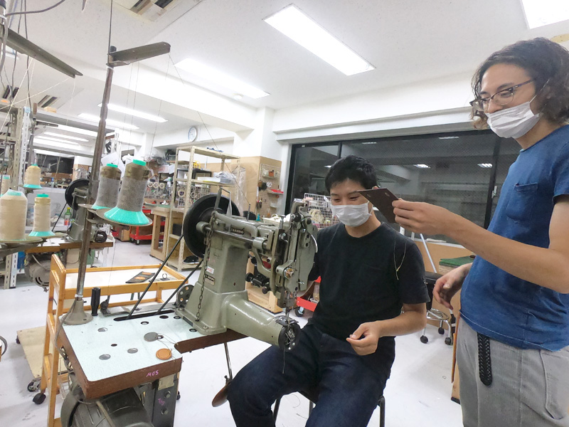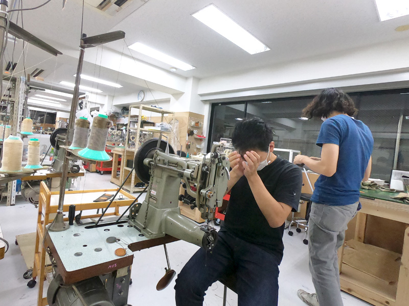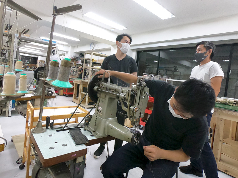 入間川が2wayスクエアリュック(R-66)を作る様子を手助けする作り手たち1