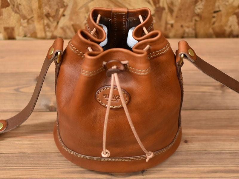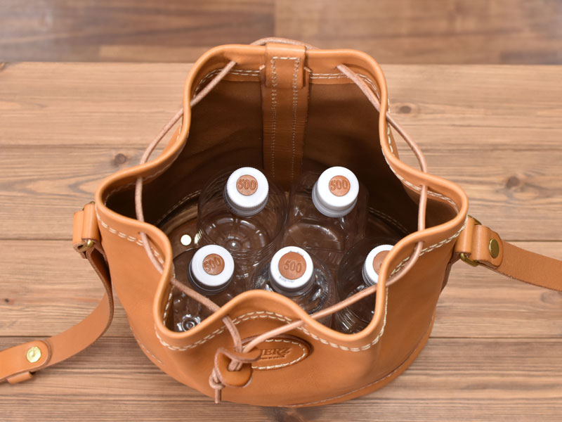 鞄の開口部は丸紐で開け閉めするタイプで、底面が楕円形なので口を開けば全体が良く見えます。