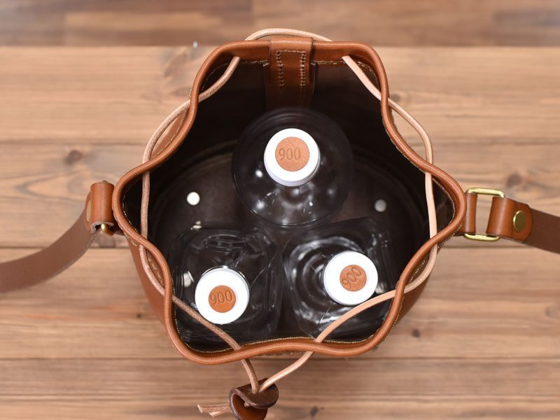 900mlを縦に(3本)入れた状態でも余裕があり、鞄の開口部もしっかり閉じることができます。