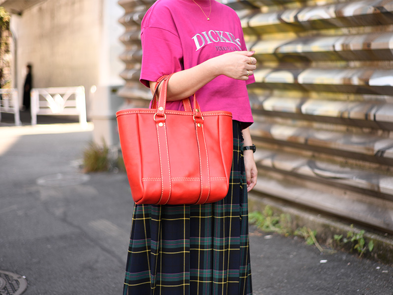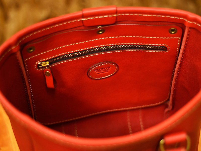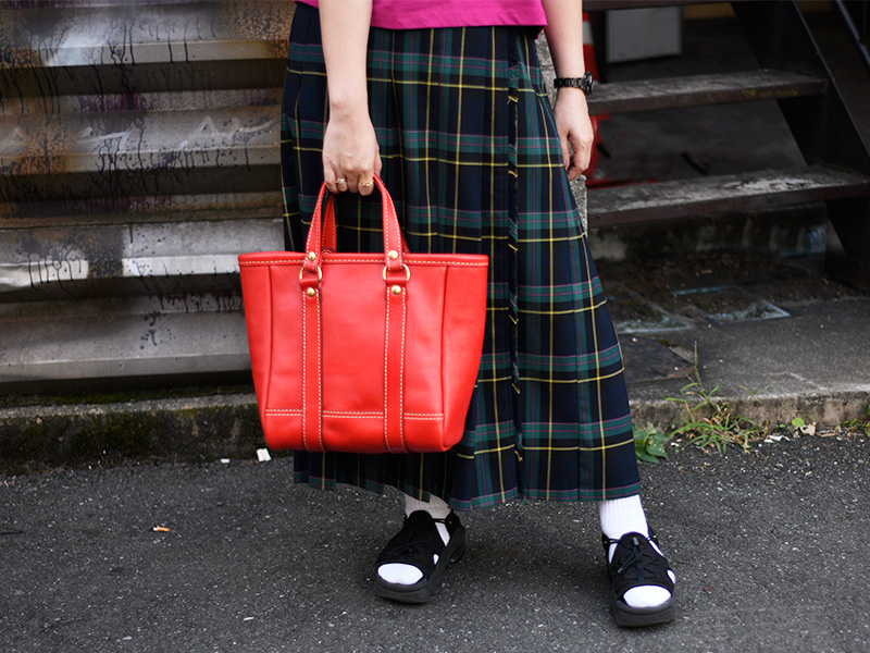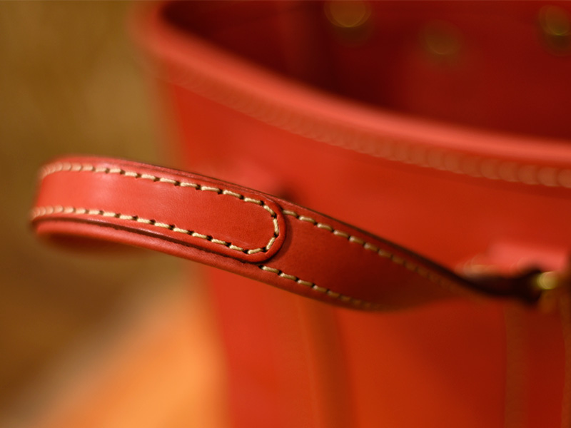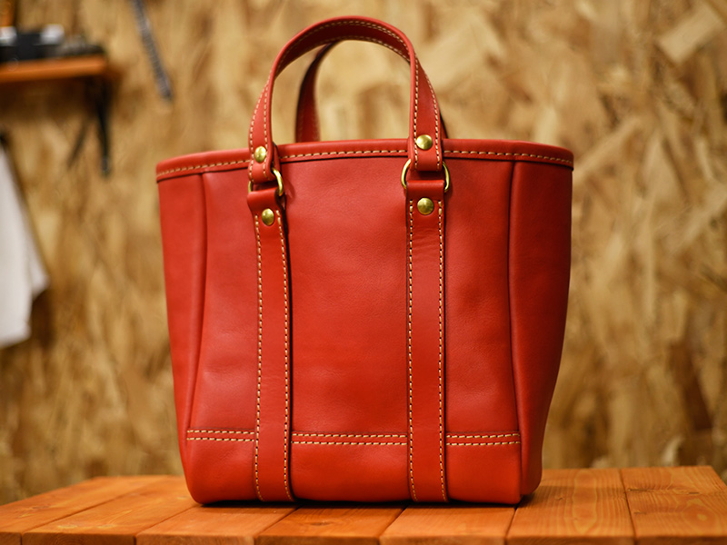 バケツ型トート(T-70)のSサイズ。革色はレッドを選びました!
