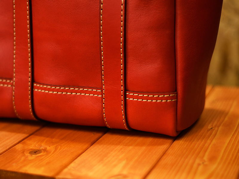 僕が個人的にこの鞄の好きなところは、底面が本体と縫い合わさっているところはダブルステッチだったりする、ちょっとした所のステッチワーク。取っ手部分に補強があるのも良いです!