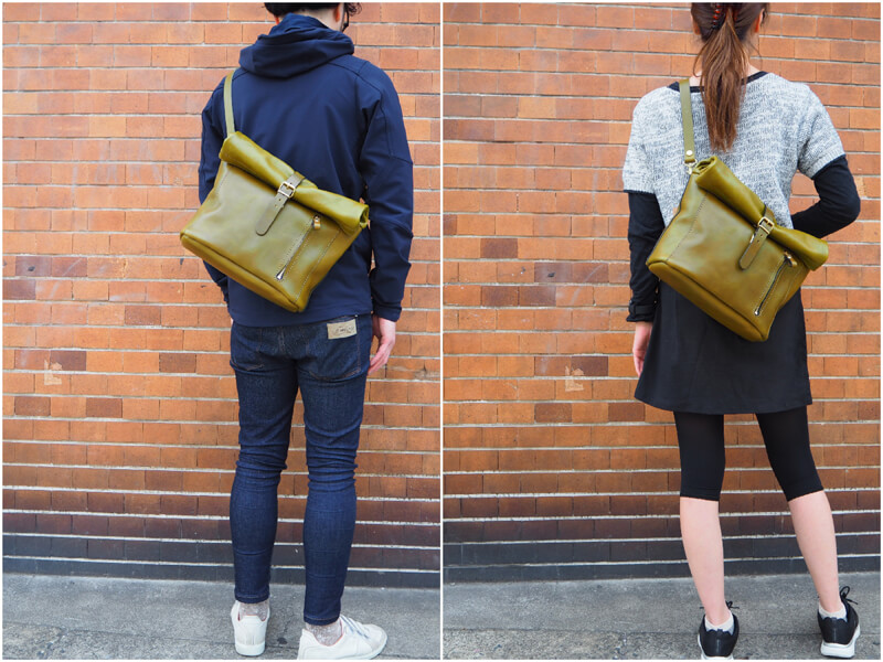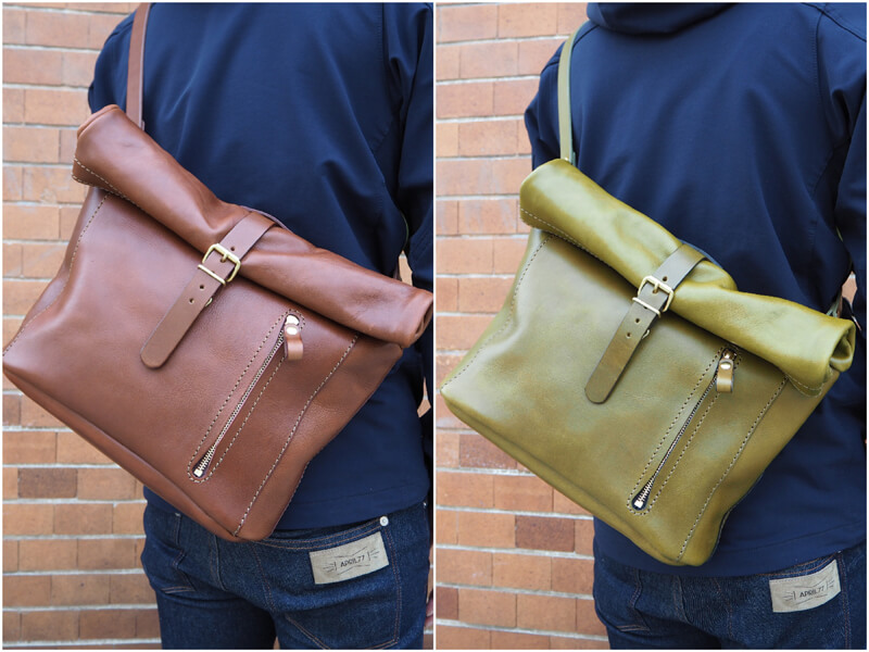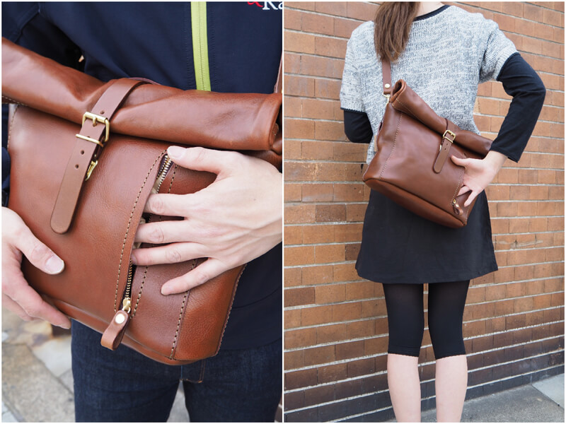 B5サイズのメッセンジャーバッグ。ヘルツでは珍しいロールトップになっています。