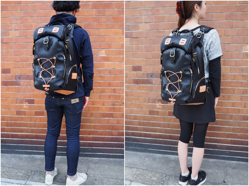 背中部分にはクッションが入っているので、背負い心地もよく、肩の部分には幅広のクッションがついています。収納部分もたくさんあります。