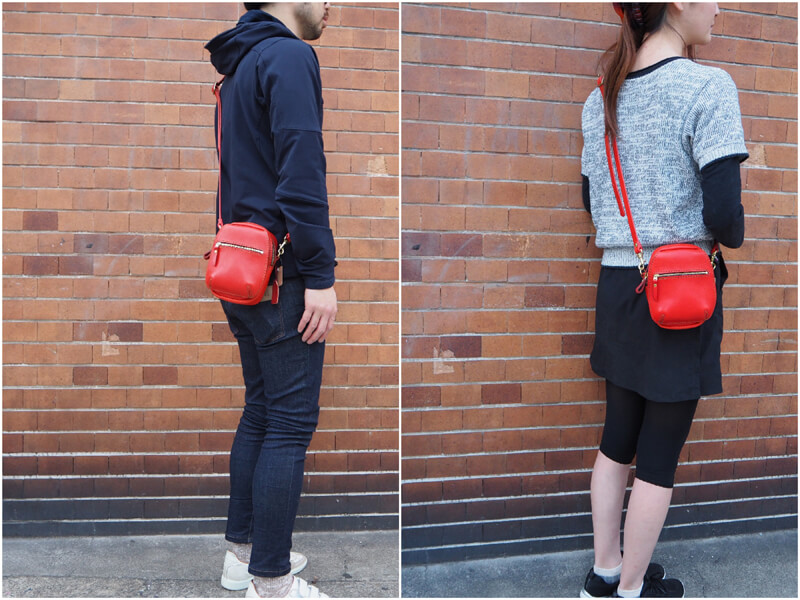 女性にはなかなかハードルの高いベルトポーチですが、タッチフットバッグの可愛いフォルムならベルトポーチでもチャレンジできると思います。
