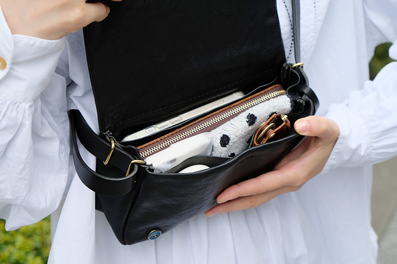 ストラップを長めにすると、タイトめではありますが、ショルダーバッグのように使うこともできます。