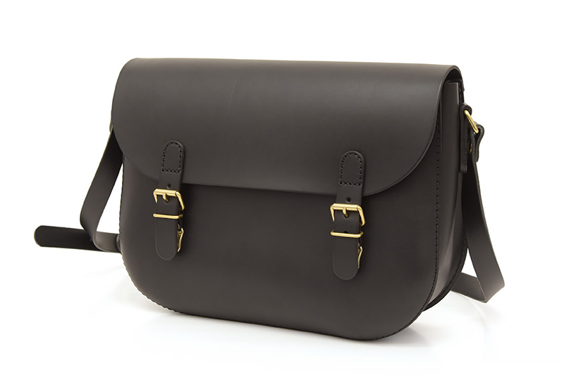 ハードレザーでベルト留めのショルダーバッグ。至ってスタンダードな見た目ではありますが、作り手がこだわった、「ぷっくり」とした形が美しく目を引く鞄です。