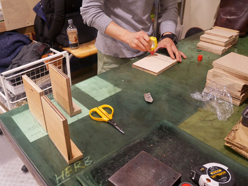 インスタグラムのストーリー等でも少しご紹介させて頂いたのですが、ブログでもその様子をチラッとお届けいたします。大小異なる角材をボンドで仮止めします。