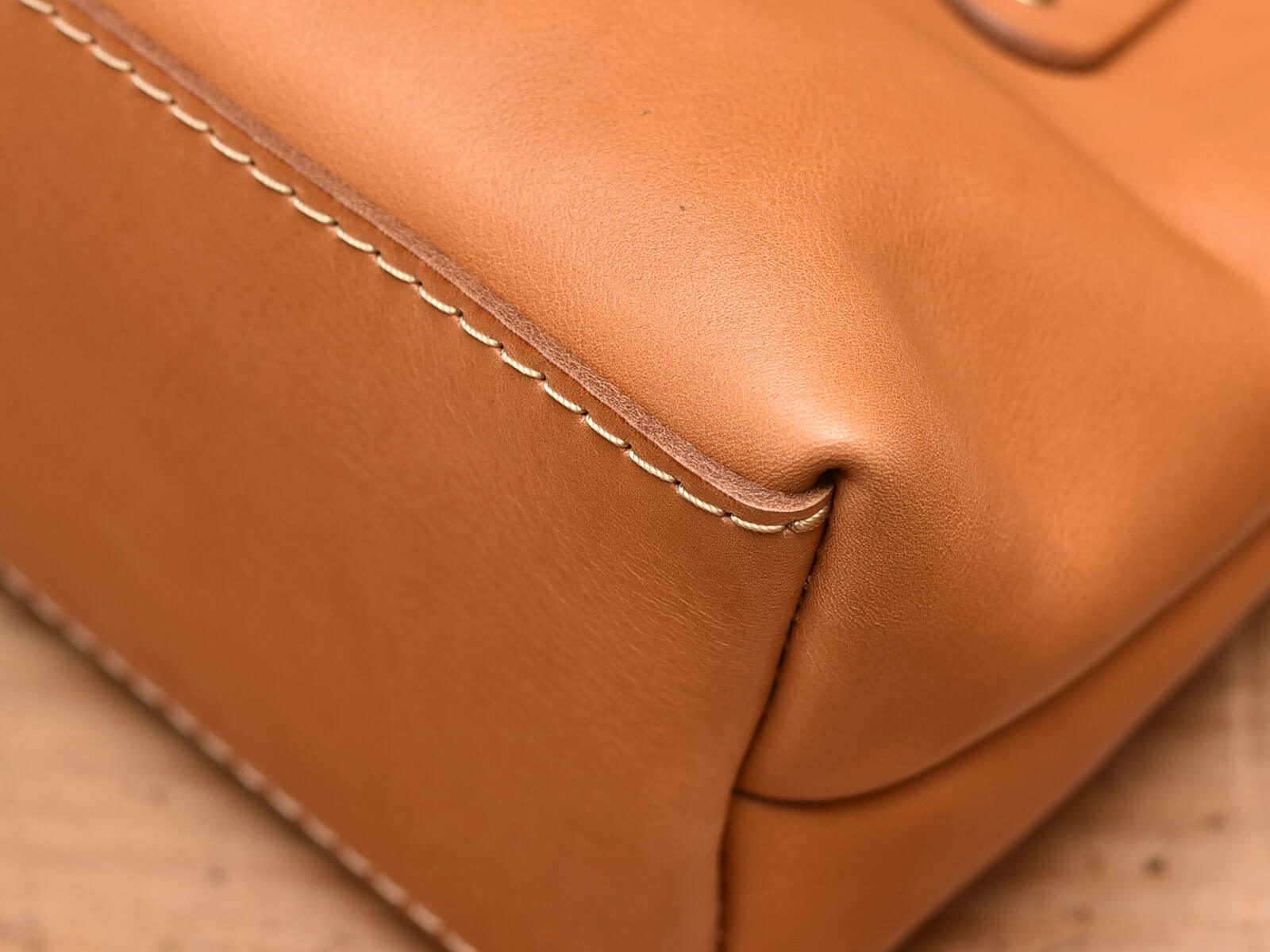 底は厚い革で作られています。ケルントートでもタフさをプラスするために底面をハードレザーで作っていた草間。「らしさ」を感じる一面です。