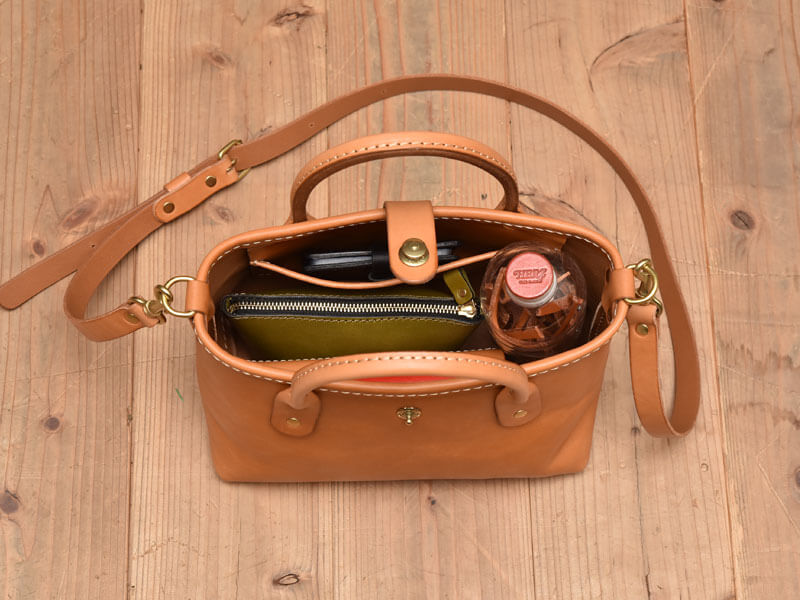 T-146は、トートバッグの中でもヘルツを代表するようなモデルです。ただ小さくリサイズするだけでは面白みがないので、ミニサイズになった時にT-146の雰囲気を損なわないよう意識しつつ、自分なりの解釈でデザインしました。上記のお話の通り、ミニサイズになってもヘルツ流のタフさはなくしたくないので、底をハードな厚革にしたりと、丈夫さに関しては意識して作ったつもりです。