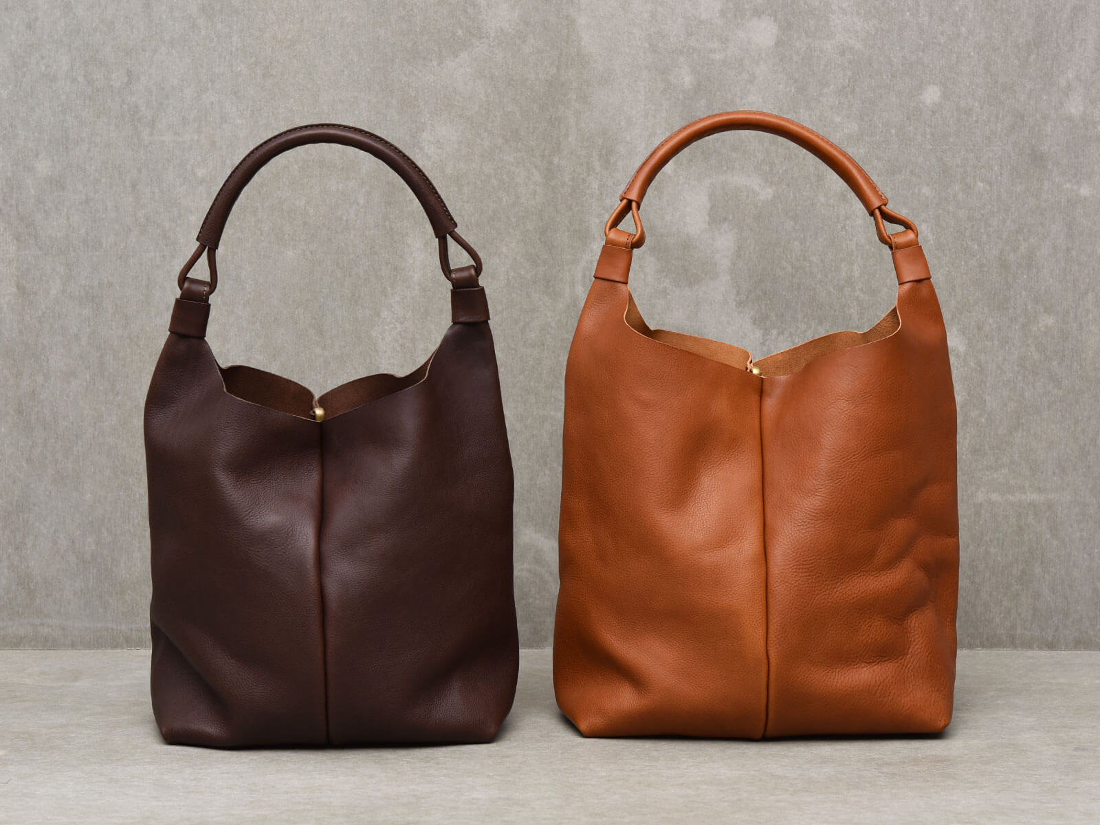 この鞄には特別にポケットは備えていません。その分、メッシュと巾着の間にちょっとした荷物をラフに差し込める遊び心のあるつくり。革のバッグとは思えないほど軽やかで、男女を問わず楽しめるユニセックスなデザインです。