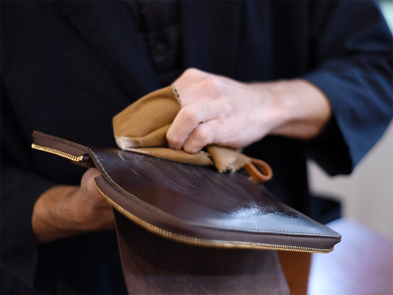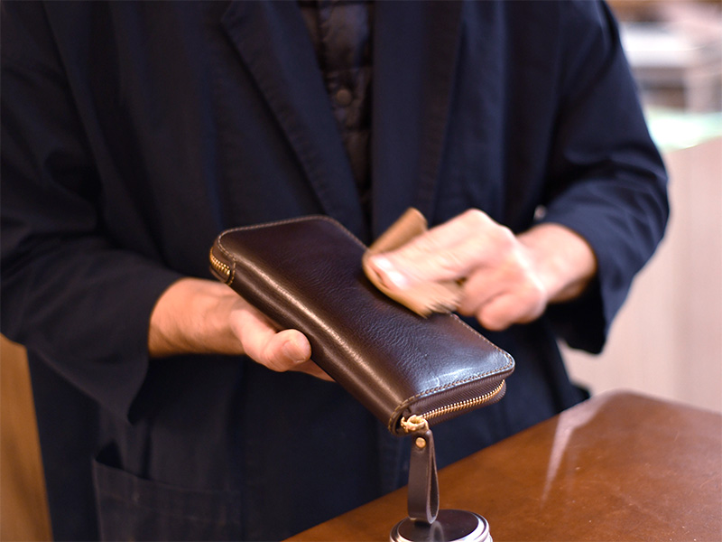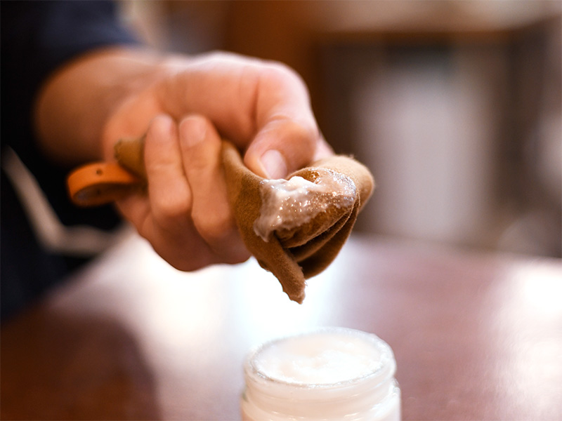 - 革表面全体に薄く塗り伸ばします。