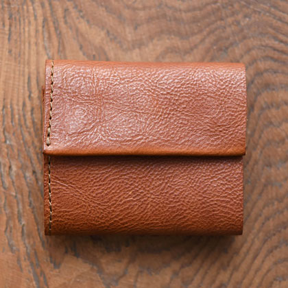 三つ折り小型財布(GS-44) 三つ折りタイプなのにお札の収まりがいいのが特徴。フラップタイプの小銭入れ、カードもほどよくまとめられる手の平サイズの三つ折りミニ財布です。